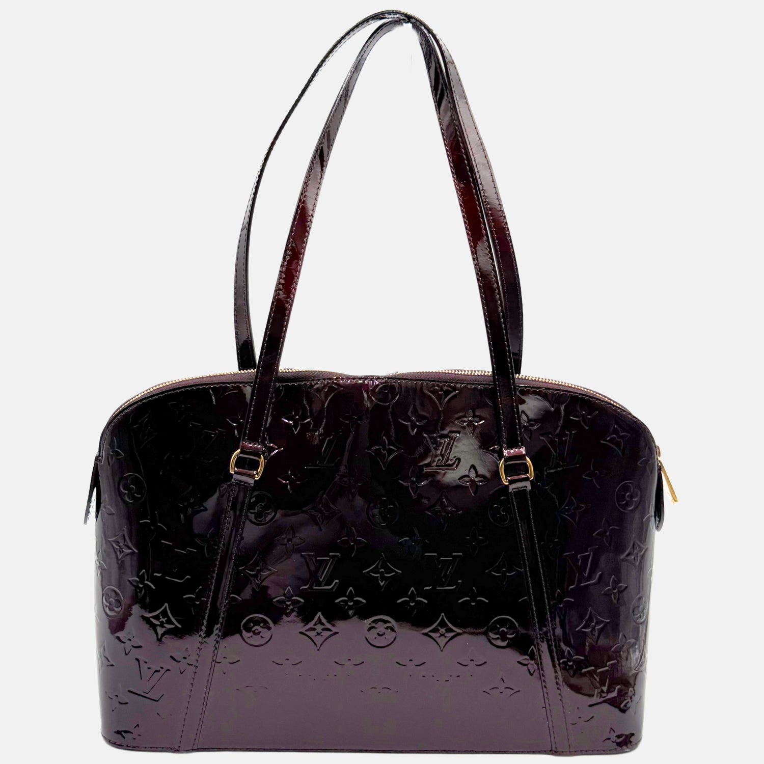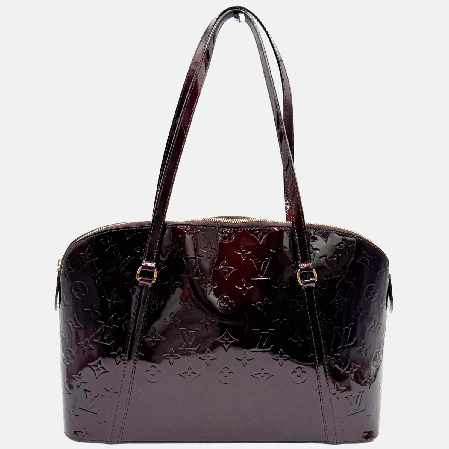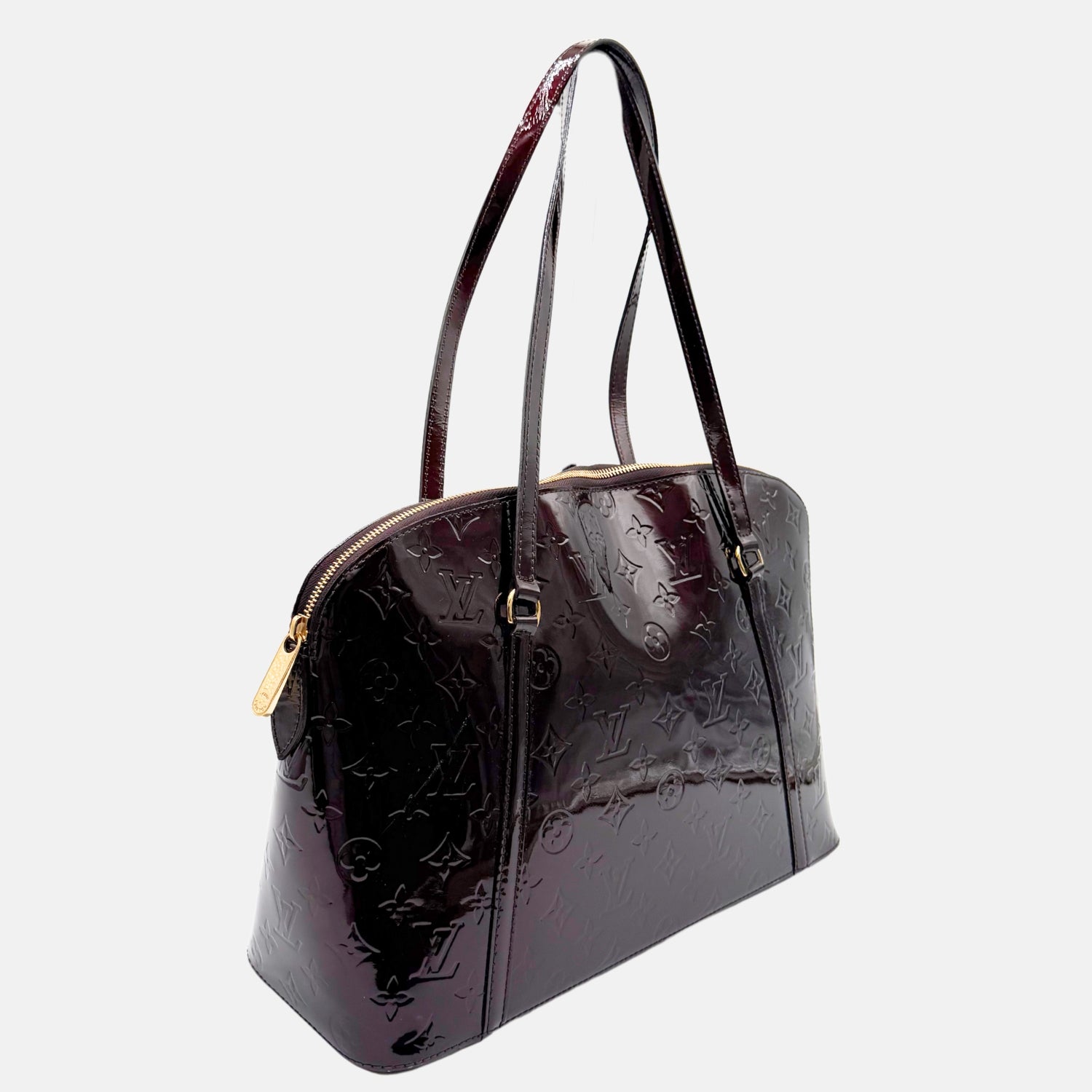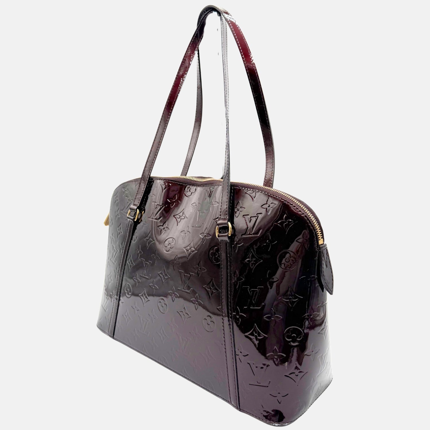 Sleek and structured, the Louis Vuitton Avalon Tote in Amarante Vernis leather features the house’s iconic monogram embossed in glossy patent finish. Its distinctive dome-like silhouette is complemented by long flat shoulder straps and a spacious, open interior, making it both stylish and practical. The deep burgundy tone adds a sophisticated richness to this elegant everyday piece.