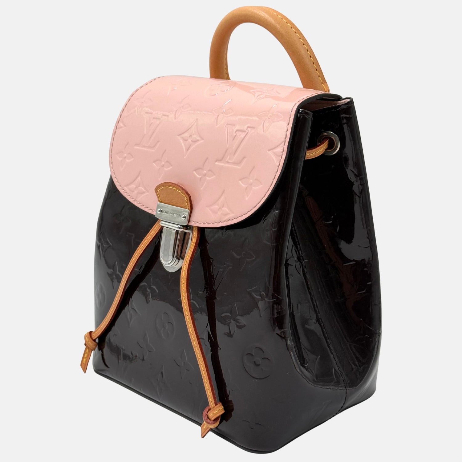 Backpack Rose Ballerine and Burgundy Vernis Monogram Montaigne Mini