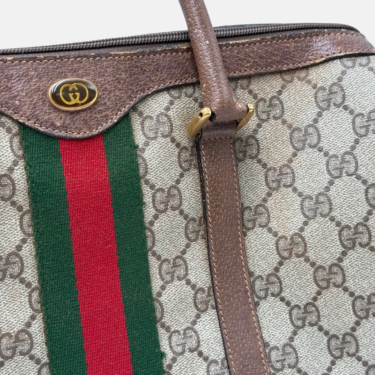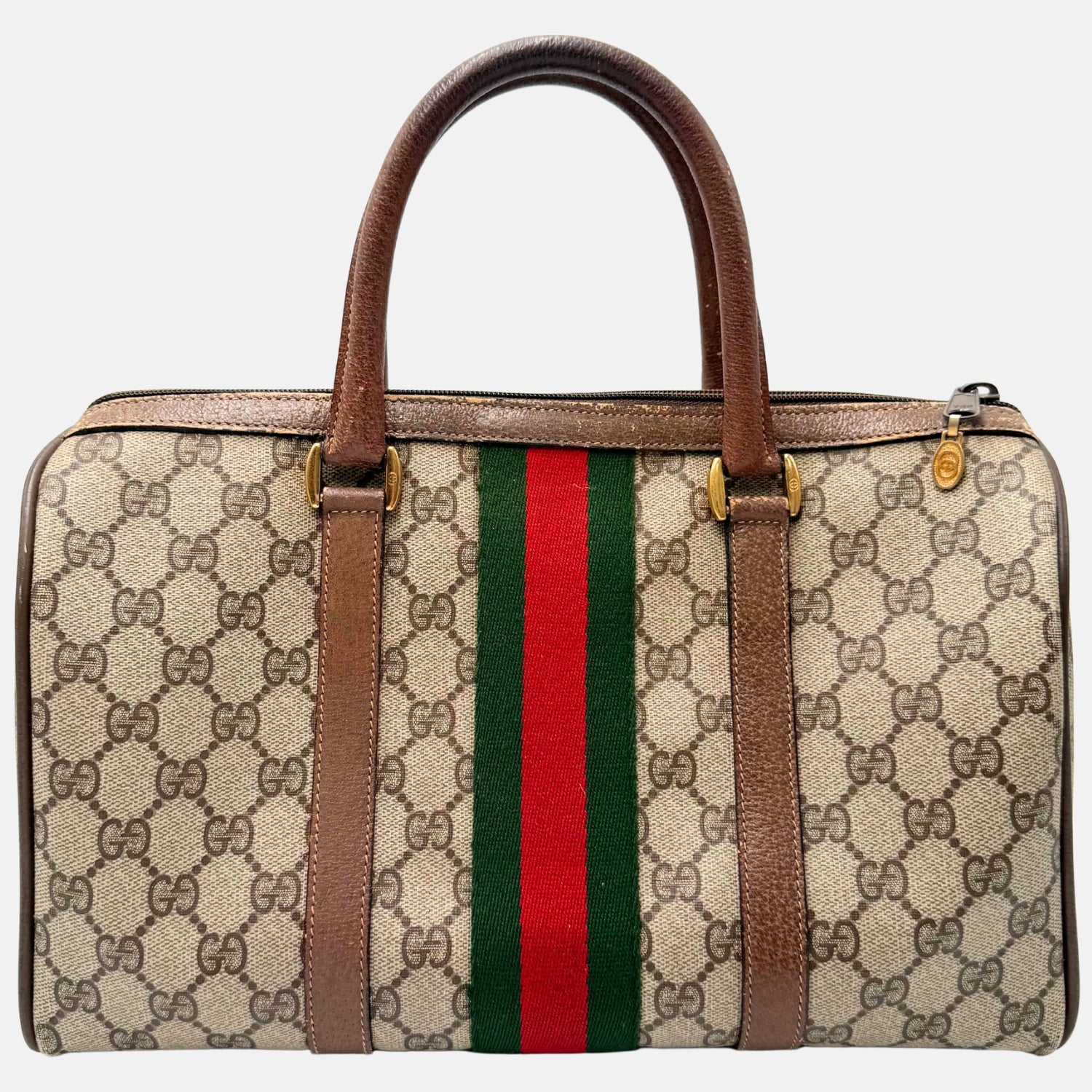 Boston Bag Beige and Brown GG Supreme Canvas Medium