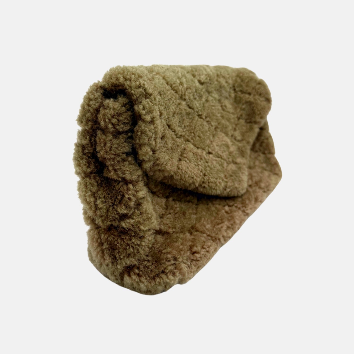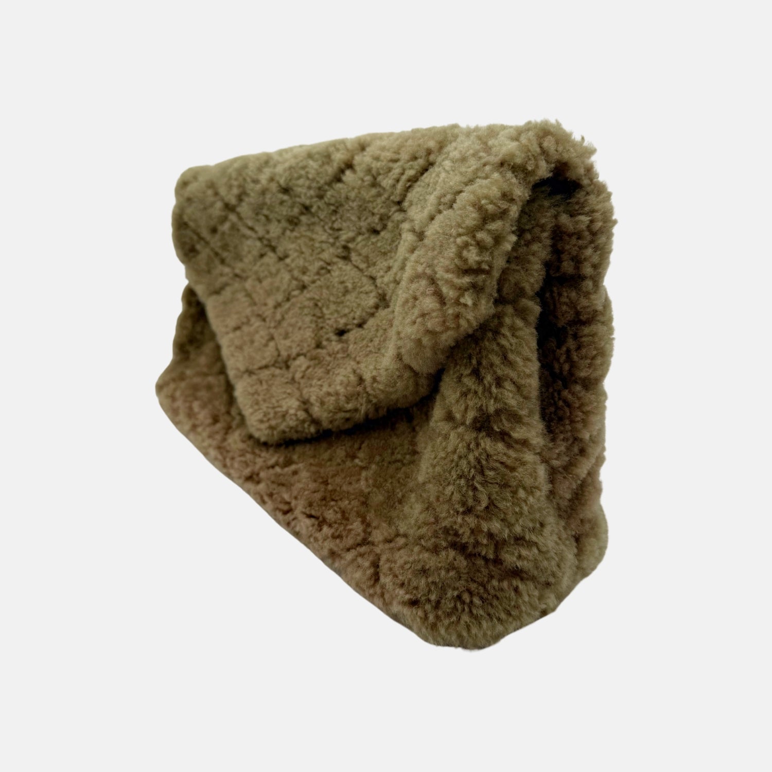 Envelope Clutch Olive Brown Quilted Shearling Medium