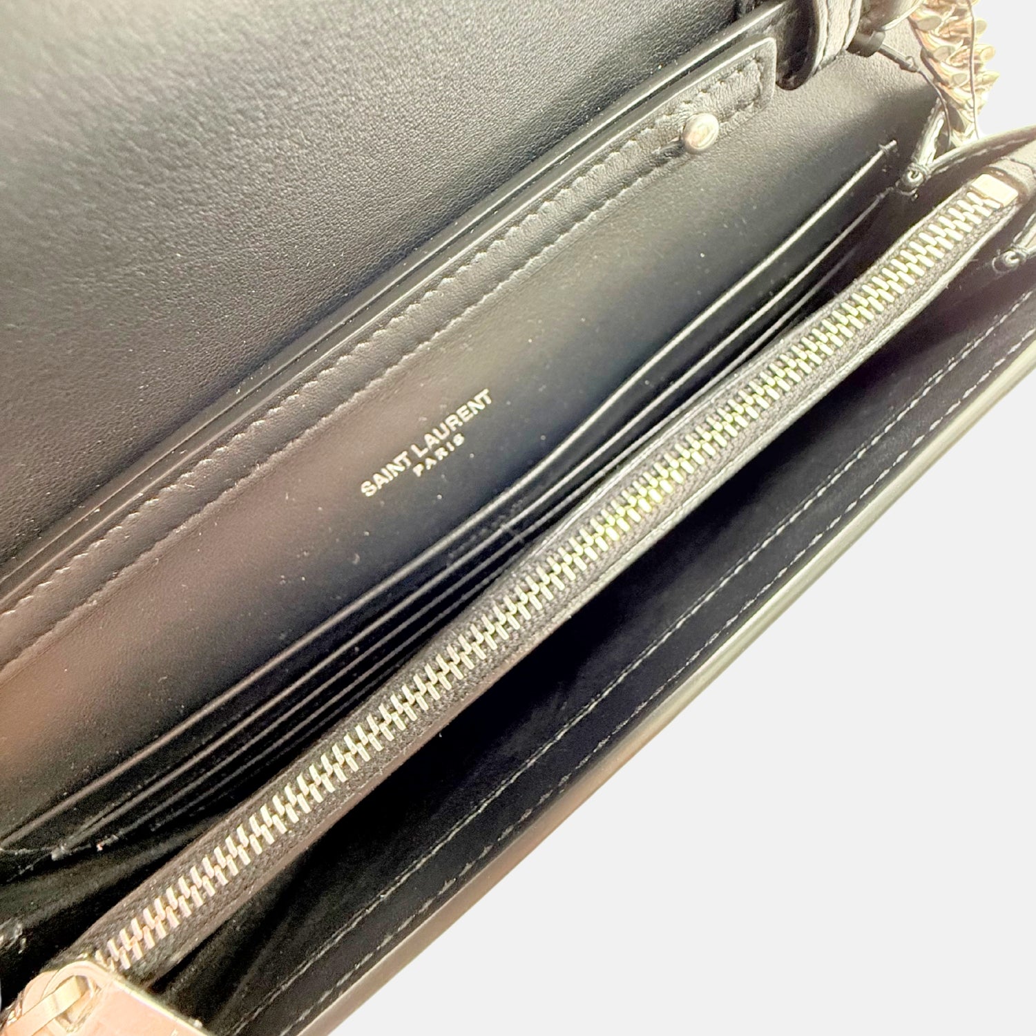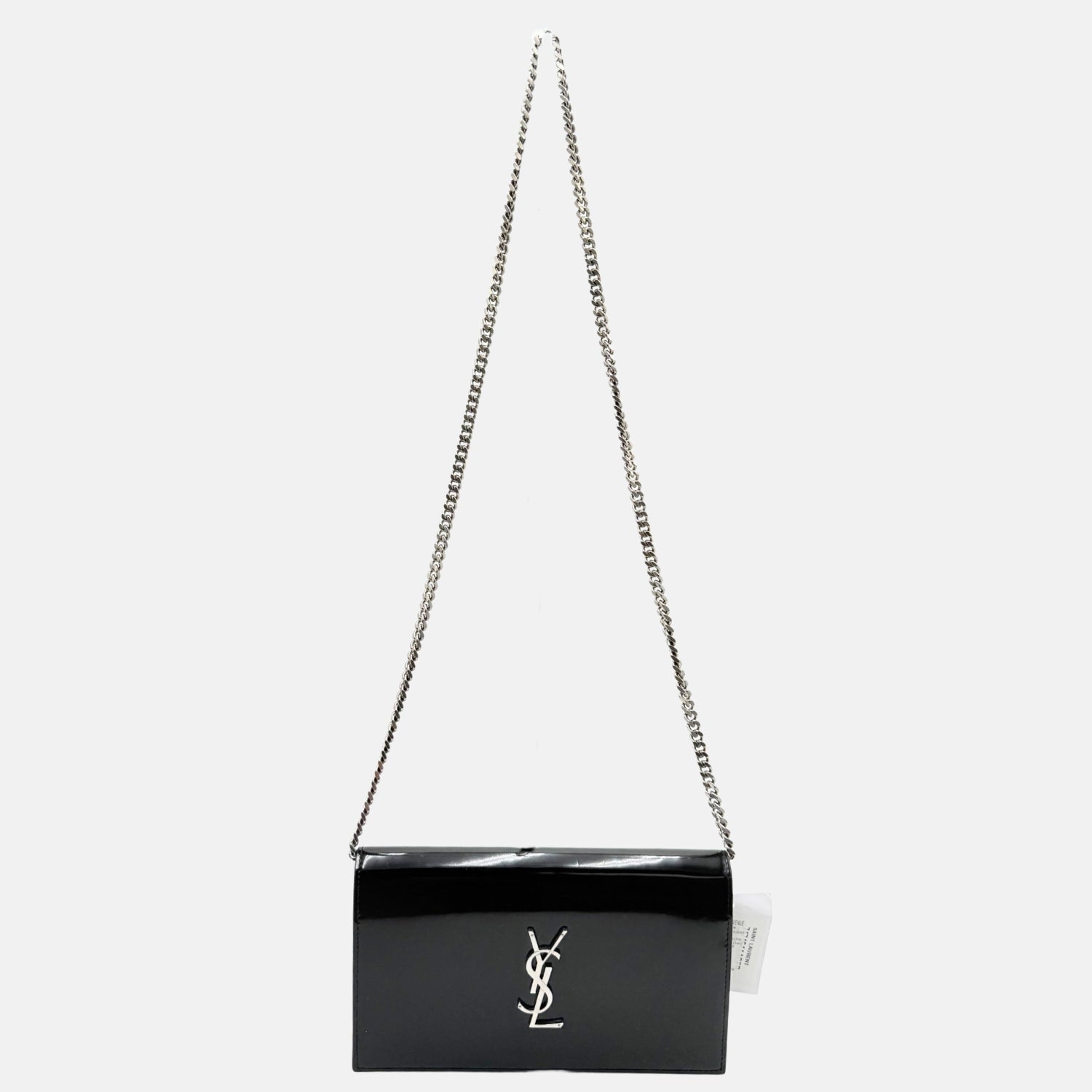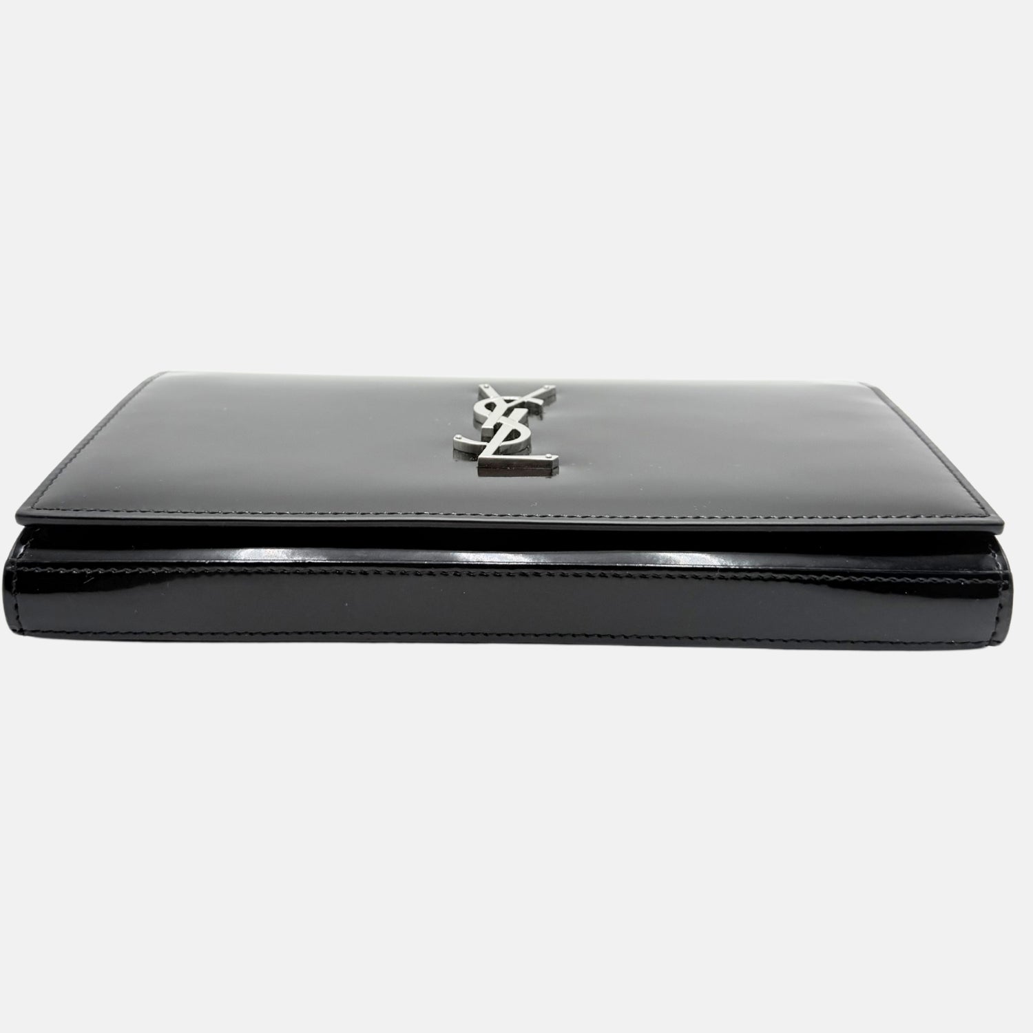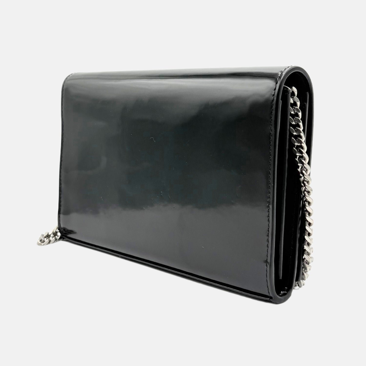 The Saint Laurent Kate Crossbody Bag Black Patent Leather Medium is a sleek evening staple reimagined with hands-free versatility. Crafted from glossy black patent leather with a structured envelope silhouette, it features the iconic silver YSL monogram and a hidden chain strap that allows it to be worn as a crossbody. With a magnetic snap closure and slim interior for essentials, this bag balances bold shine with classic Saint Laurent sophistication.