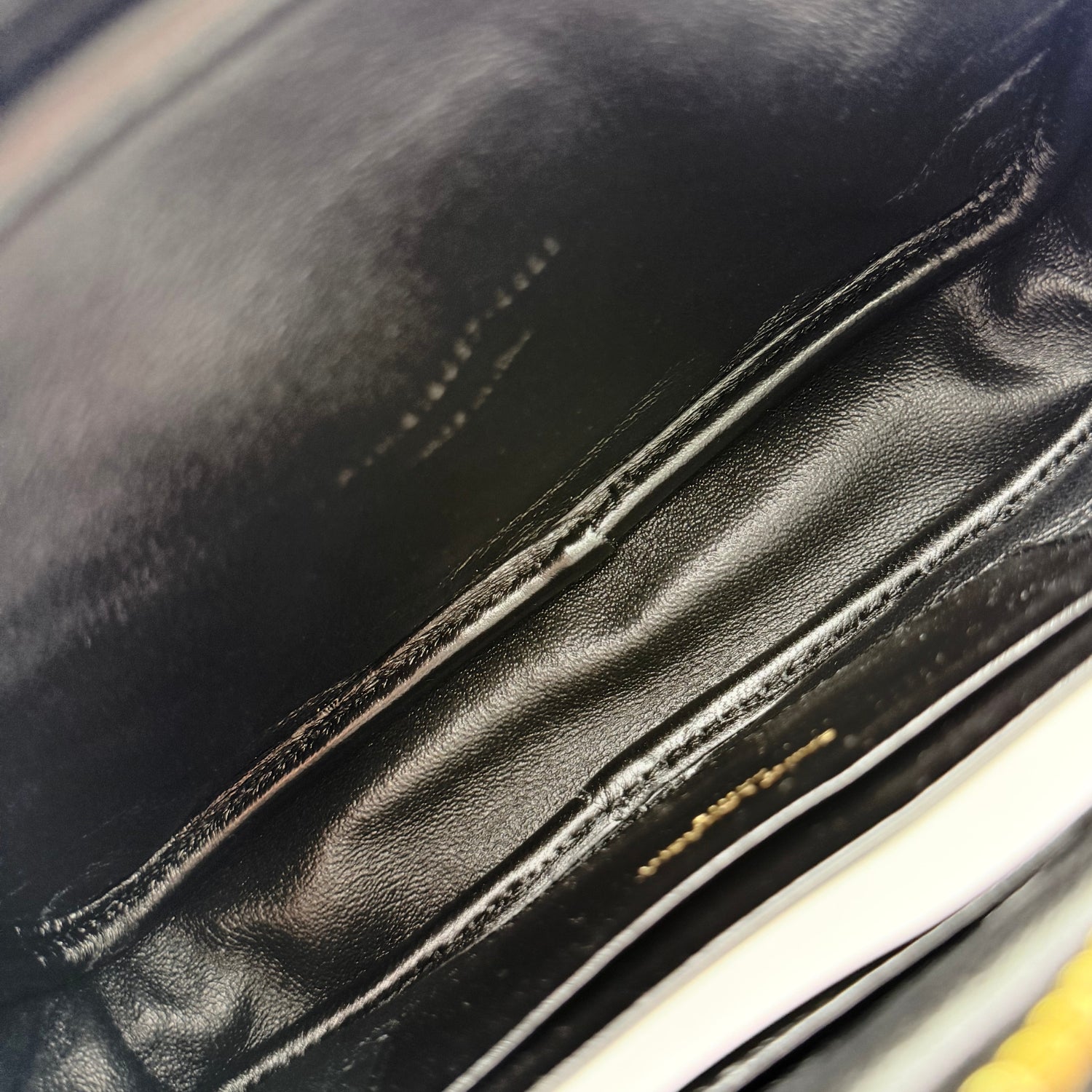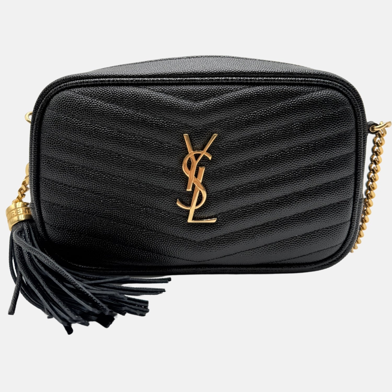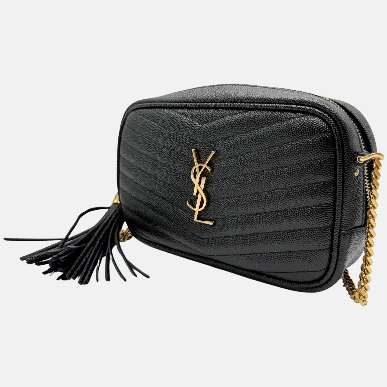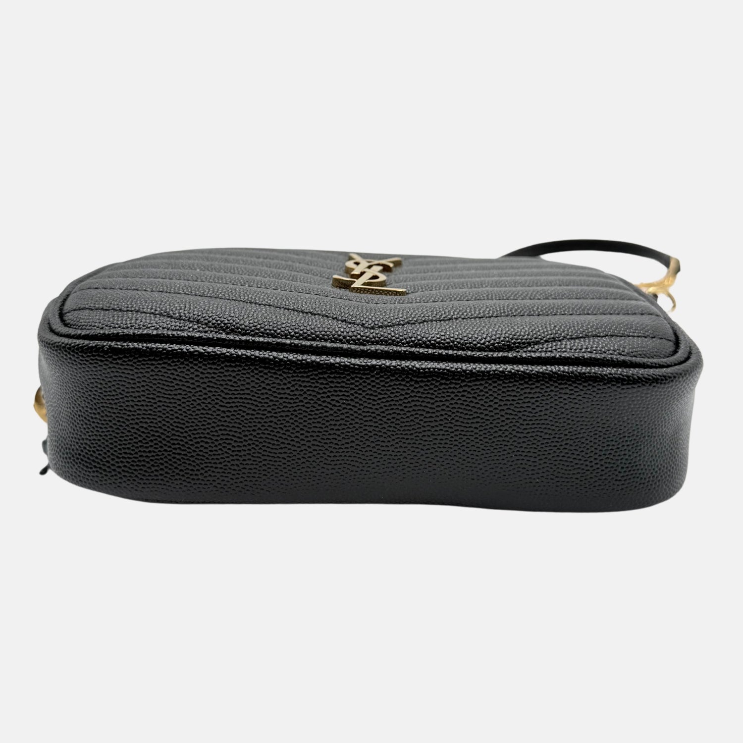 The Saint Laurent Lou Camera Bag Black Chevron Quilted Leather Small is a cult favorite that blends sleek utility with signature branding. Crafted from durable black grained leather with chevron quilting, it features a bold gold YSL monogram, coordinating chain and leather strap, and a playful leather tassel. Compact but practical, this crossbody is perfect for carrying daily essentials with effortless polish from day to night.