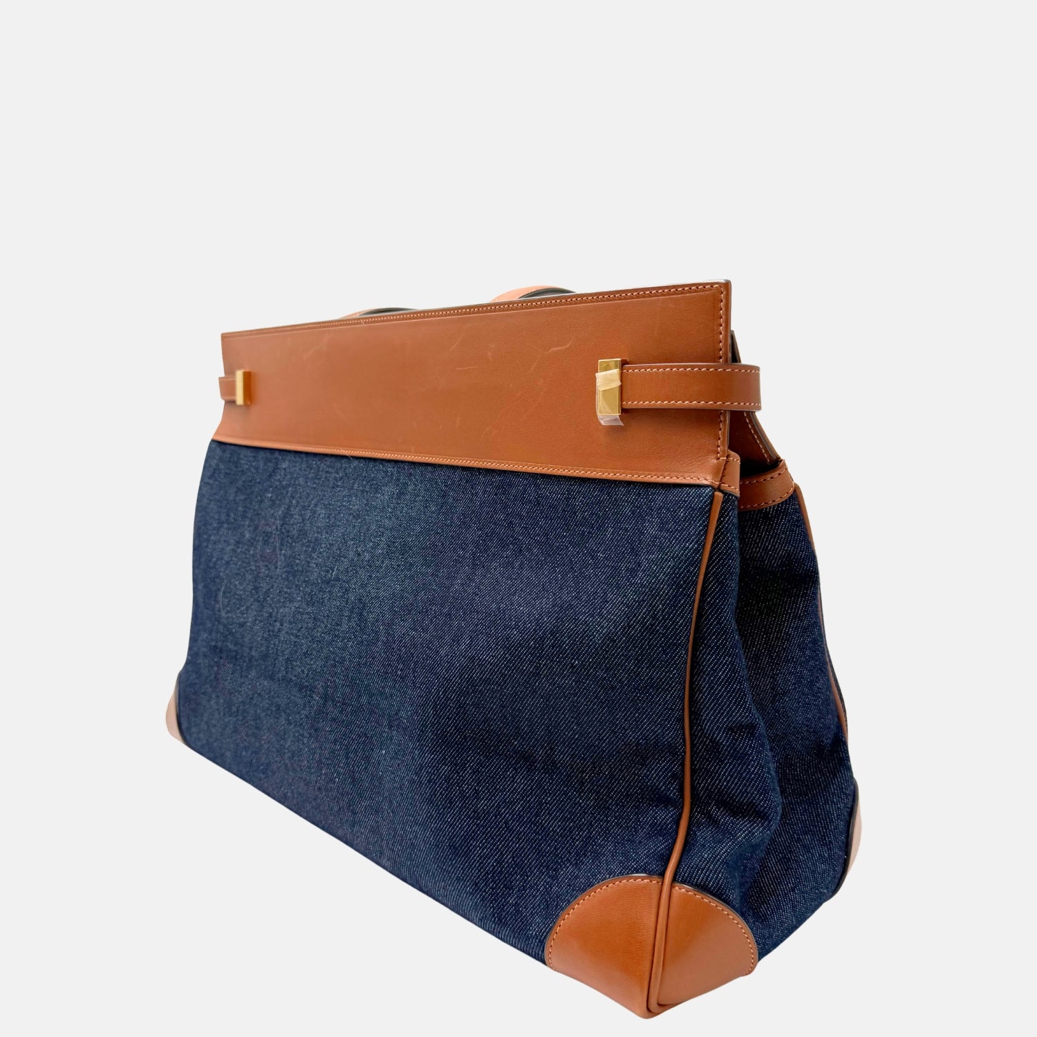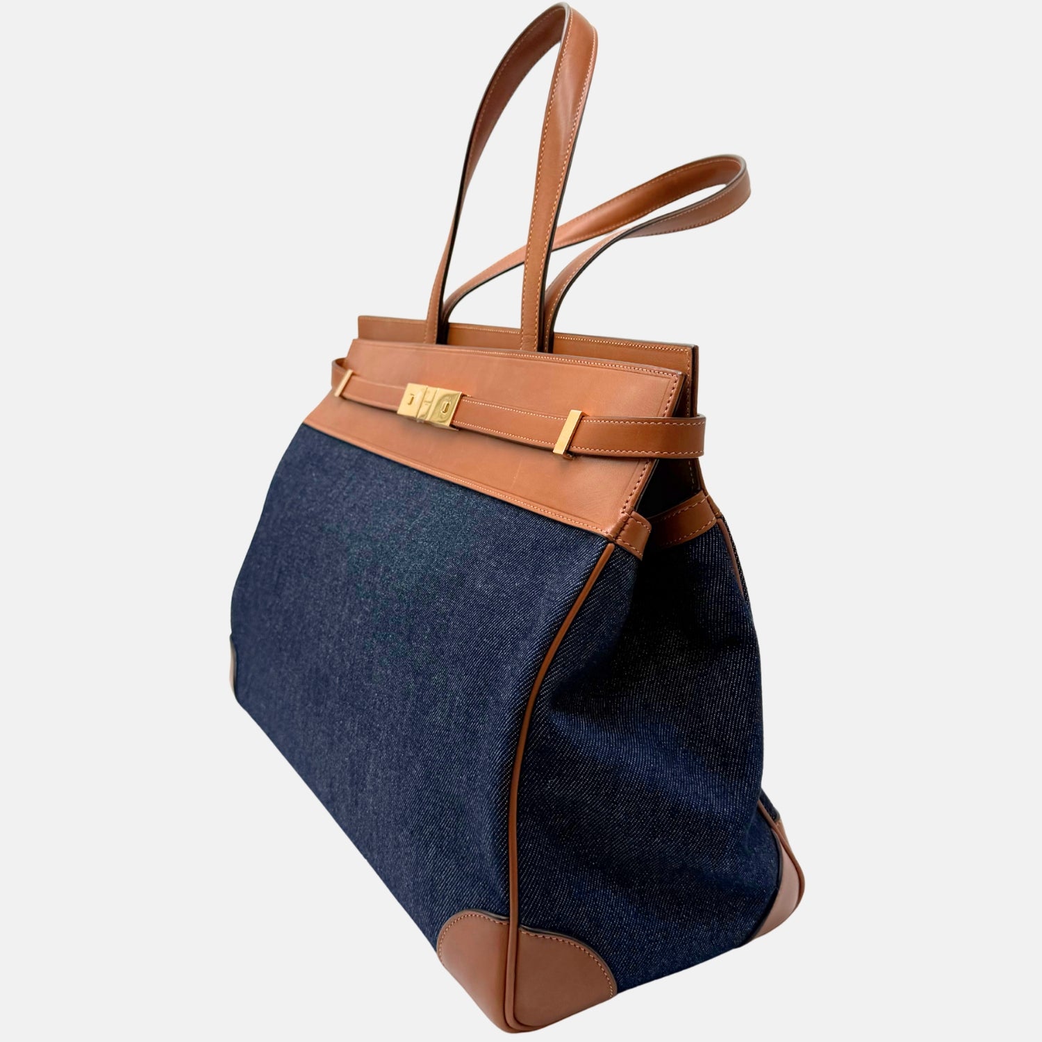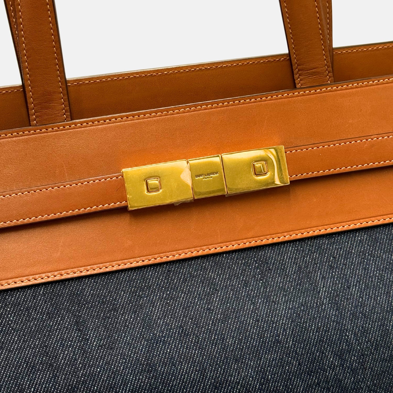 The Saint Laurent Manhattan Tote makes a bold statement with its mix of rich brown leather trim and structured dark denim body. This large-format tote is both elevated and practical, featuring clean lines, a structured silhouette, and a signature gold-tone clip buckle closure that echoes Saint Laurent’s minimalist Parisian sensibility. Perfect for city life or weekend travel, the Manhattan combines heritage craftsmanship with a fresh, fashion-forward edge.