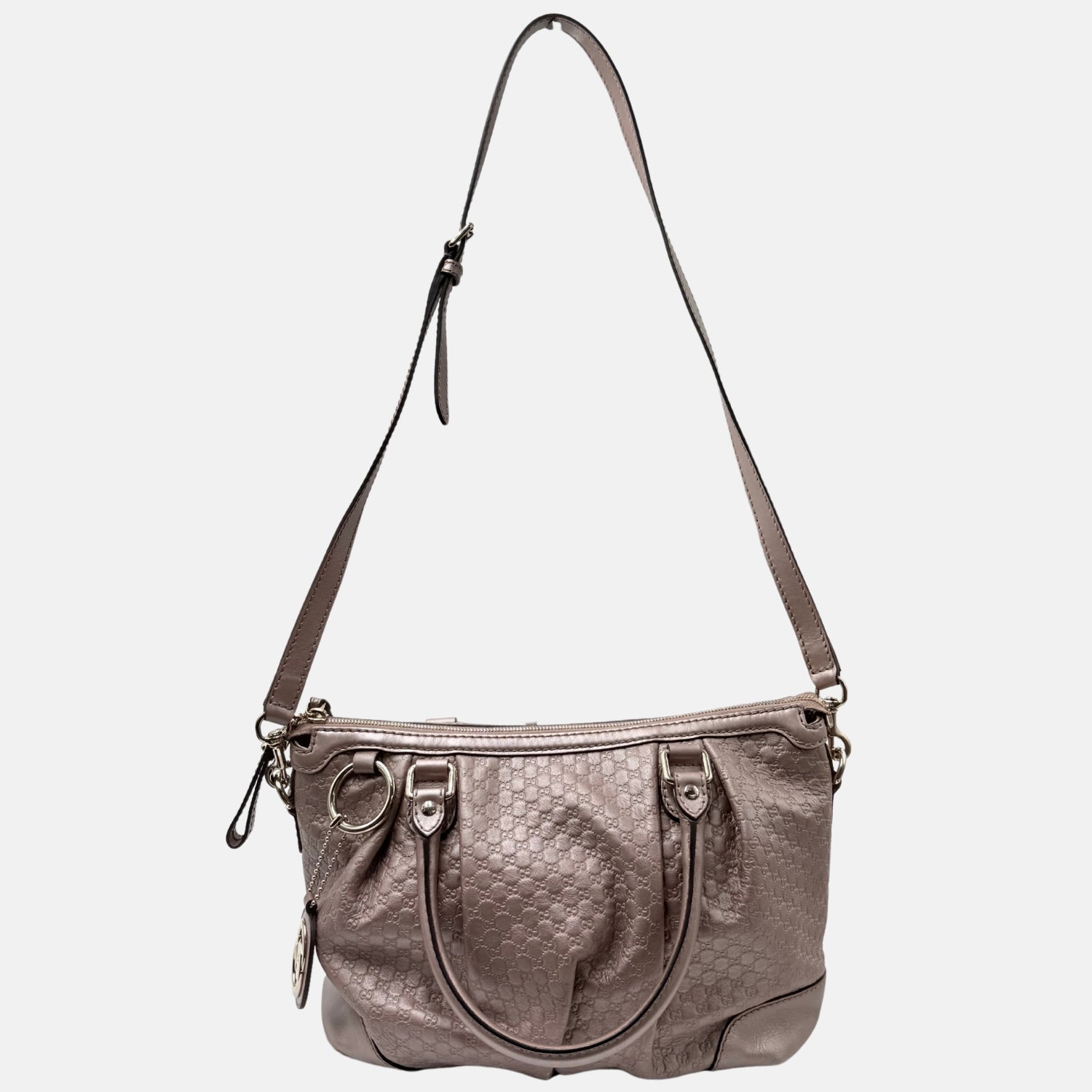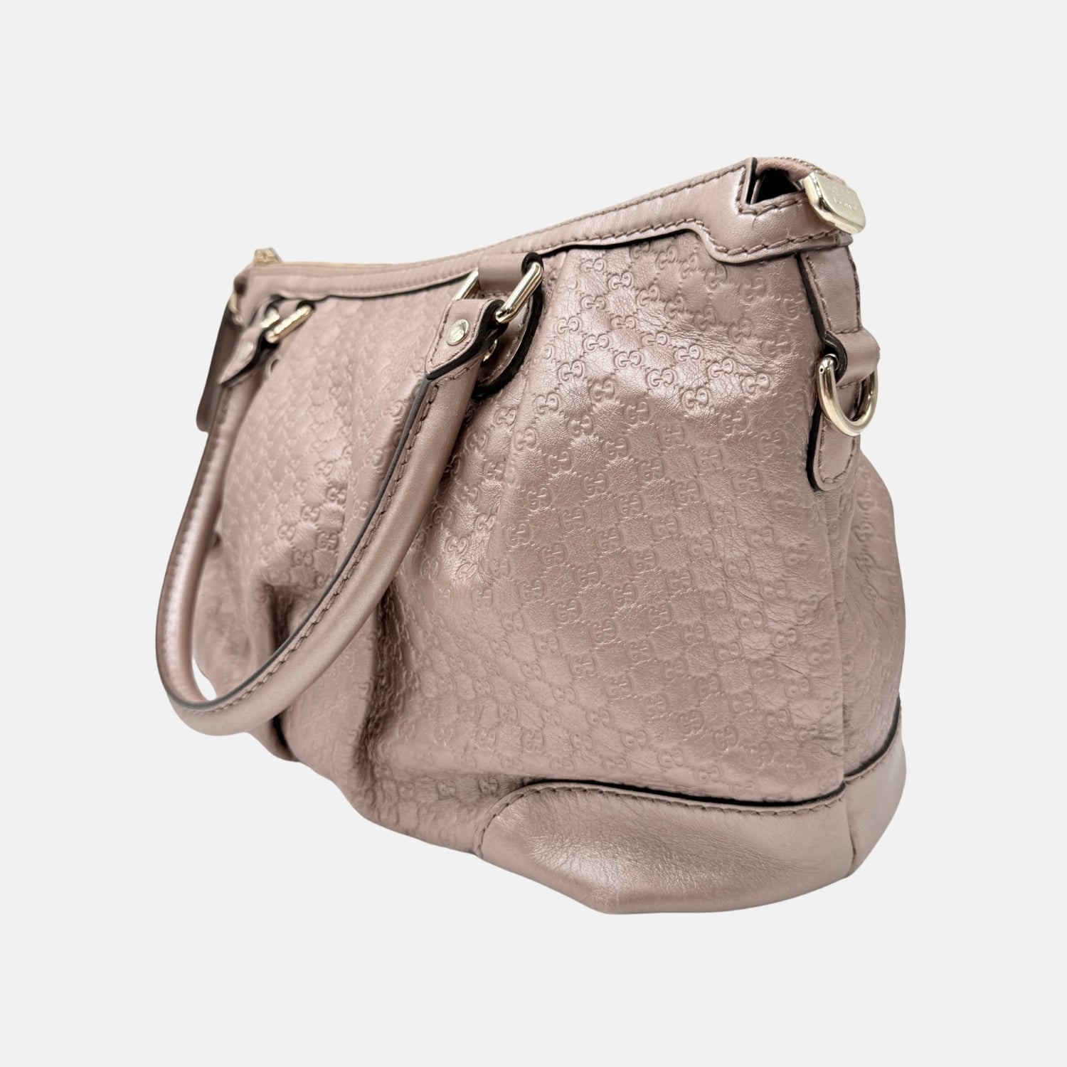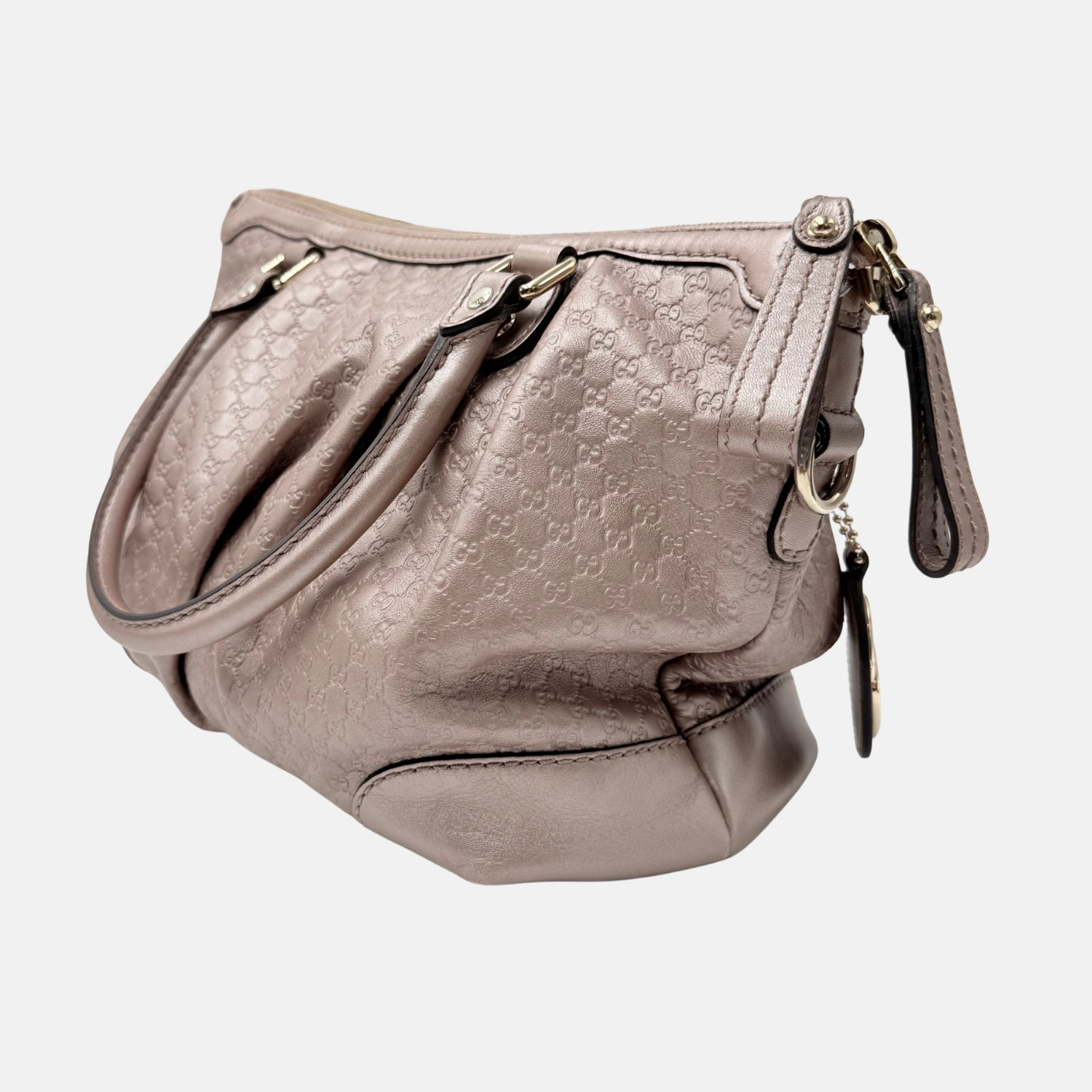 Top Handle Bag Metallic Dusty Pink Microguccissima Leather Sukey Medium